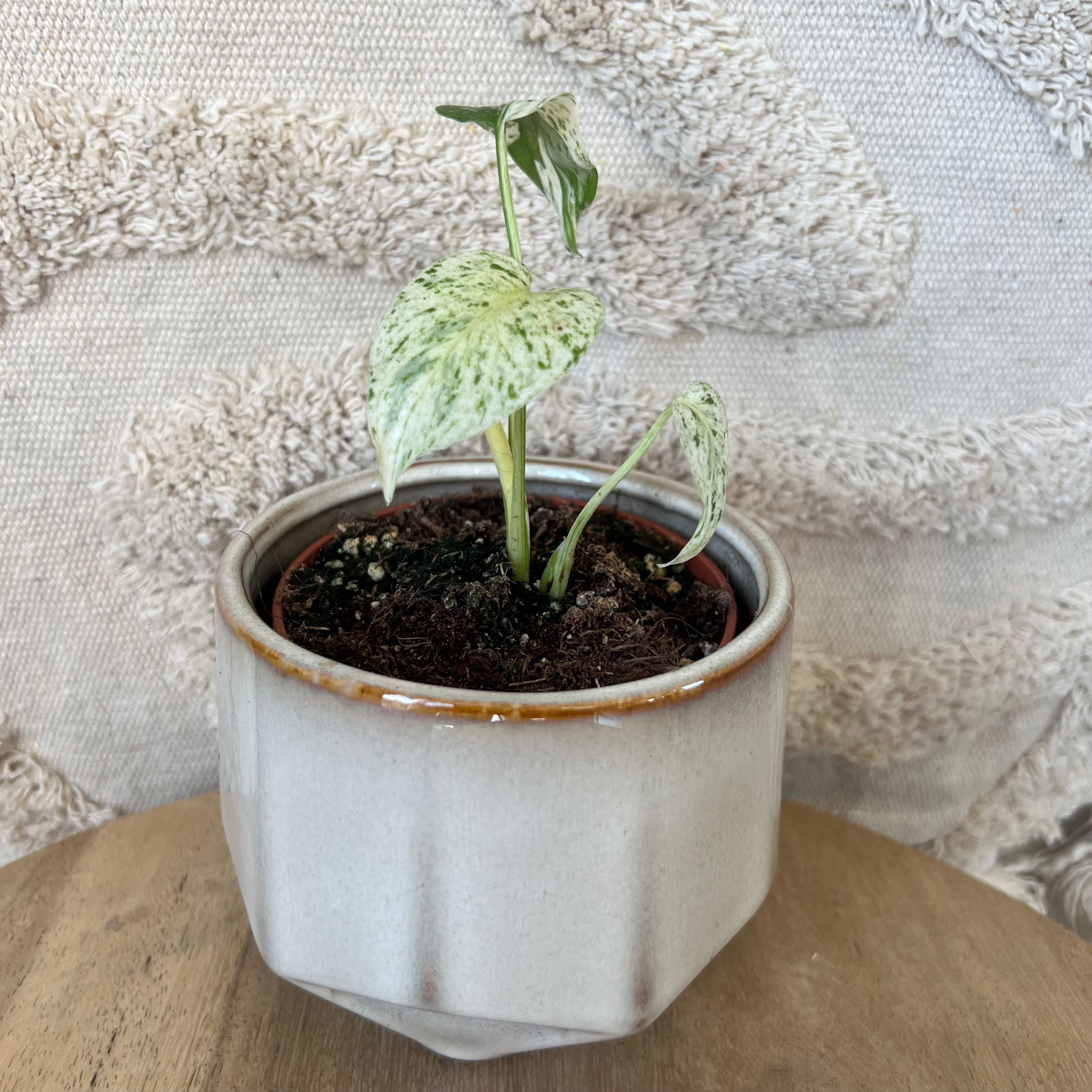 De naam ‘Alocasia’ is afgeleid van het Griekse woord ‘allos’ (anders), wat verwijst naar de unieke vorm en structuur van de bladeren. Met zijn dramatische lijnen en soms metallic glans is de Alocasia een plant die direct opvalt in elk interieur.
