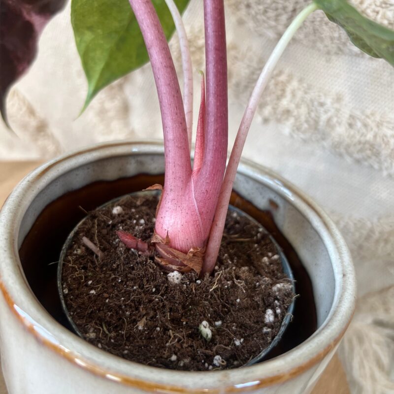 De naam ‘Alocasia’ is afgeleid van het Griekse woord ‘allos’ (anders), wat verwijst naar de unieke vorm en structuur van de bladeren. Met zijn dramatische lijnen en soms metallic glans is de Alocasia een plant die direct opvalt in elk interieur.